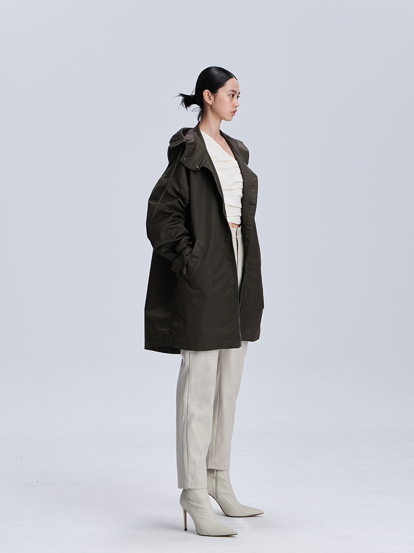- 俐落的剪接,雙針壓線呈現自然抽皺線條,帥氣感十足